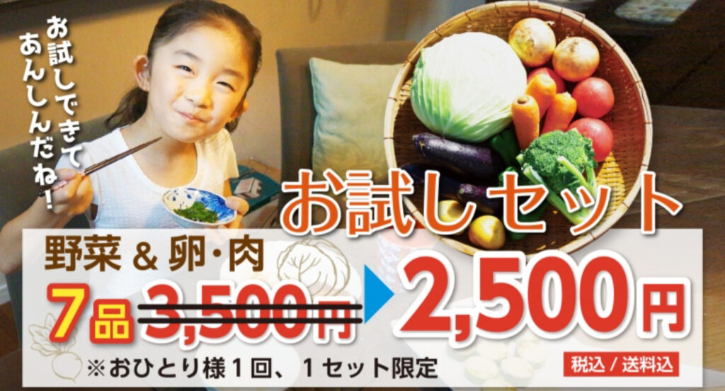 【PR】無農薬野菜ミレー 今回ご紹介するのは、野菜を中心とした食材の宅配サービスです! 「有機野菜・無農薬野菜のある食卓 健やかな暮らし、家族のしあわせ」 をビジョンに、自然と体に配慮した農法で育った、こだわりの野菜をお届けしてくれます。■こんな方におすすめ■・野菜を皮や葉まで楽しみたいという、料理が好きな人・健康のために農薬や化学肥料を使わない食材を使いたい人・生産者固定・栽培方法固定で欲しい人詳しくは下記バナーをクリック↓ 今回ご紹介するのは、野菜を中心とした食材の宅配サービスです! 「有機野菜・無農薬野菜のある食卓健やかな暮らし、家族のしあわせ」 をビジョンに、自然と体に配慮した農法で育った、こだわりの野菜をお届けしてくれます。■こんな方におすすめ■・野菜を皮や葉まで楽しみたい・健康のために農薬や化学肥料を使わない食材が欲しい・生産者固定・栽培方法固定で欲しい詳しくは下記バナーをクリック↓ 詳細はこちらをクリック ◎おすすめ商品 >> 定期野菜セット >> 隔週向けセット >> お試しセット 定期野菜セット 季節の野菜と果物 盛りだくさんセット (3~5名様向け)4,000~5,000円前後 季節の野菜と果物14~16種類 普段使いの野菜に加えて少しユニークな野菜や季節の果物まで、旬の恵みがたっぷりと詰まったセット。料理を楽しまれる方や、人数の多いご家庭にぴったりです。 季節の野菜と果物14~16種類 普段使いの野菜に加えて少しユニークな野菜や季節の果物まで、旬の恵みがたっぷりと詰まったセット。料理を楽しまれる方や、人数の多いご家庭にぴったりです。 季節の野菜セット(1~3名様向け)3,000~4,000円前後 季節の野菜12~14種類 1~3名のご家族向け。いつでもうれしい普段使いの野菜を中心に食べきれるだけ詰まったセット。足りない野菜や果物など、好きなものを追加して楽しめます。 季節の野菜12~14種類 1~3名のご家族向け。いつでもうれしい普段使いの野菜を中心に食べきれるだけ詰まったセット。足りない野菜や果物など、好きなものを追加して楽しめます。 隔週向けセット 【隔週購入向け】料理の定番・基本野菜セット7,844円 いつでも何回でも購入可能 「季節の野菜セット」「盛りだくさんセット」は毎週購入を想定しているため、2週ごとに入れ替わる野菜が多く、隔週の定期購入は同じ野菜だったり、なかなか入らない野菜があったりしがちになってしまうそうです。そんな隔週での定期購入にぴったりなのがこのセットです! いつでも何回でも購入可能 「季節の野菜セット」「盛りだくさんセット」は毎週購入を想定しているため、2週ごとに入れ替わる野菜が多く、隔週の定期購入は同じ野菜だったり、なかなか入らない野菜があったりしがちになってしまうそうです。そんな隔週での定期購入にぴったりなのがこのセットです! お試しセット はじめまして!お試しセット7品 3,500円 → 2,500円 【お一人様1回・1セット限り】 野菜&卵・肉 7品をお試し!「まずは一度試してみたい」という方に。食材の鮮度や品質、味や利便性をお確かめください。 【お一人様1回・1セット限り】 野菜&卵・肉 7品をお試し!「まずは一度試してみたい」という方に。食材の鮮度や品質、味や利便性をお確かめください。 ◎特徴 ●朝どり野菜をその日のうちに発送 鮮度を大切にしているため、注文後に野菜を収穫。朝、採れたての野菜をその日のうちに発送し、翌日にはお届けしてくれます。 鮮度を大切にしているため、注文後に野菜を収穫。朝、採れたての野菜をその日のうちに発送し、翌日にはお届けしてくれます。 ●農薬はできる限り使わない 有機栽培・無農薬・減農薬(使用量通常の半分以下)を取り扱い、全ての野菜に「栽培方法」「生産地」「生産者」が記載されています。 有機栽培・無農薬・減農薬(使用量通常の半分以下)を取り扱い、全ての野菜に「栽培方法」「生産地」「生産者」が記載されています。 ●定期購入の内容をWeb上で変更できる 商品の追加や削除、お休みや日時の変更など、定期購入の予定や内容の変更はWeb上でいつでもできます。 商品の追加や削除、お休みや日時の変更など、定期購入の予定や内容の変更はWeb上でいつでもできます。 ご注文はこちらのバナーから↓ 商材名 無農薬野菜ミレー運営者 R.S※当サイトはアフィリエイトプログラムを利用し宣伝目的で作成しております。