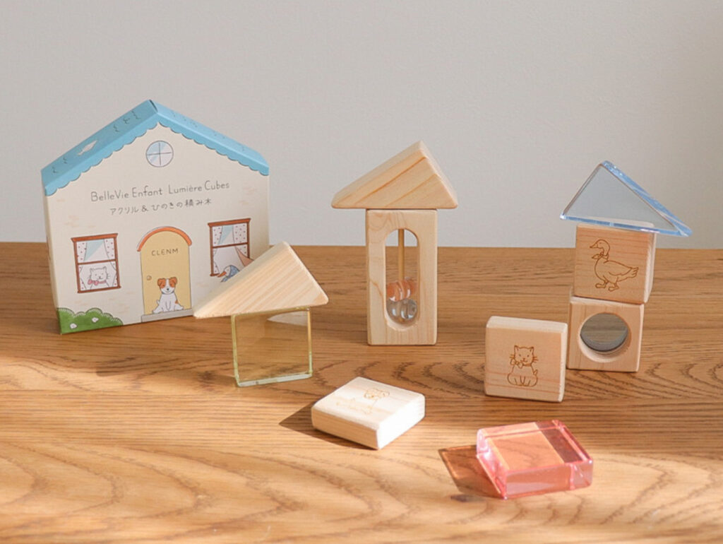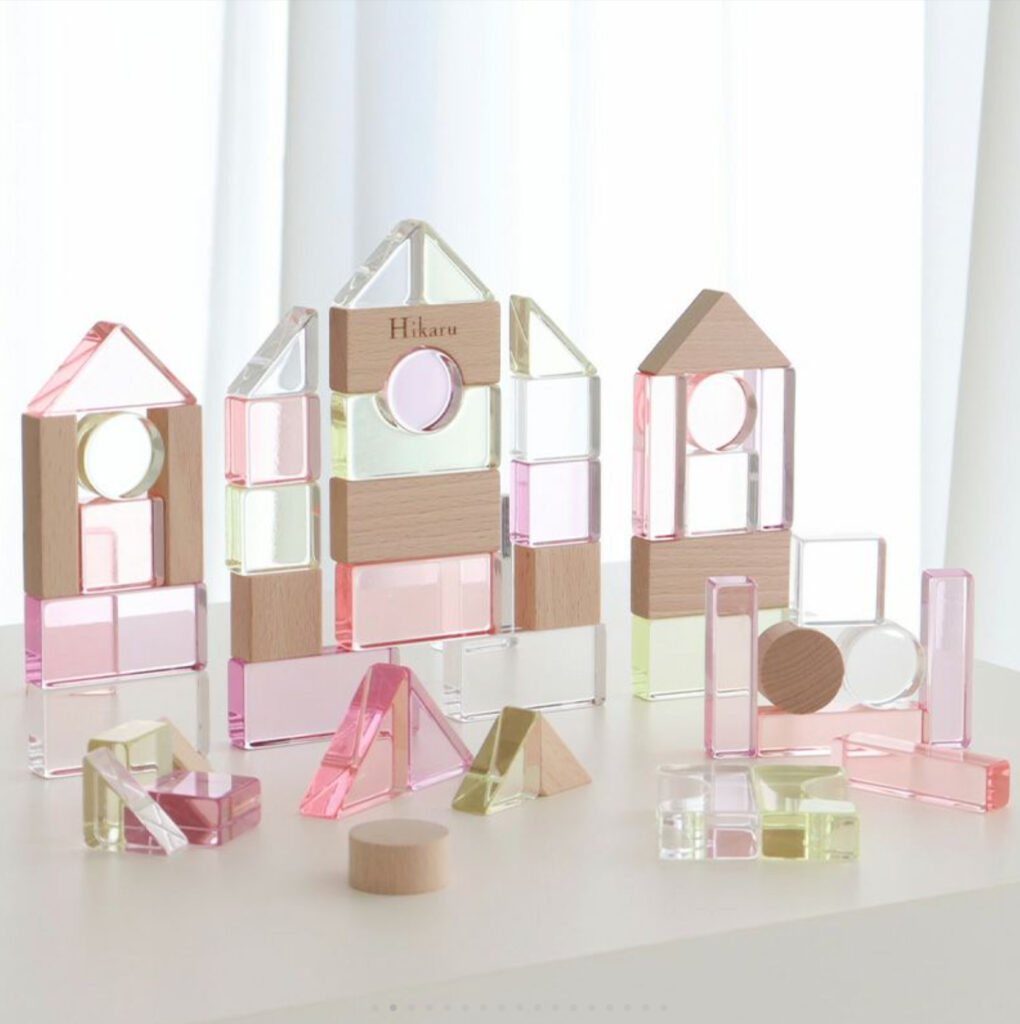 キラキラ光るアクリルの積み木は見た目の可愛さは