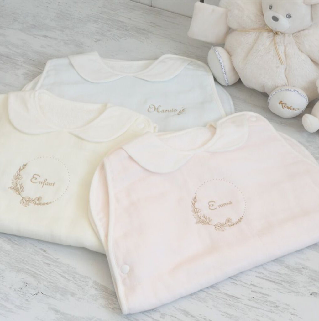 ベビーキャップに赤ちゃんのお名前を刺繍できます。