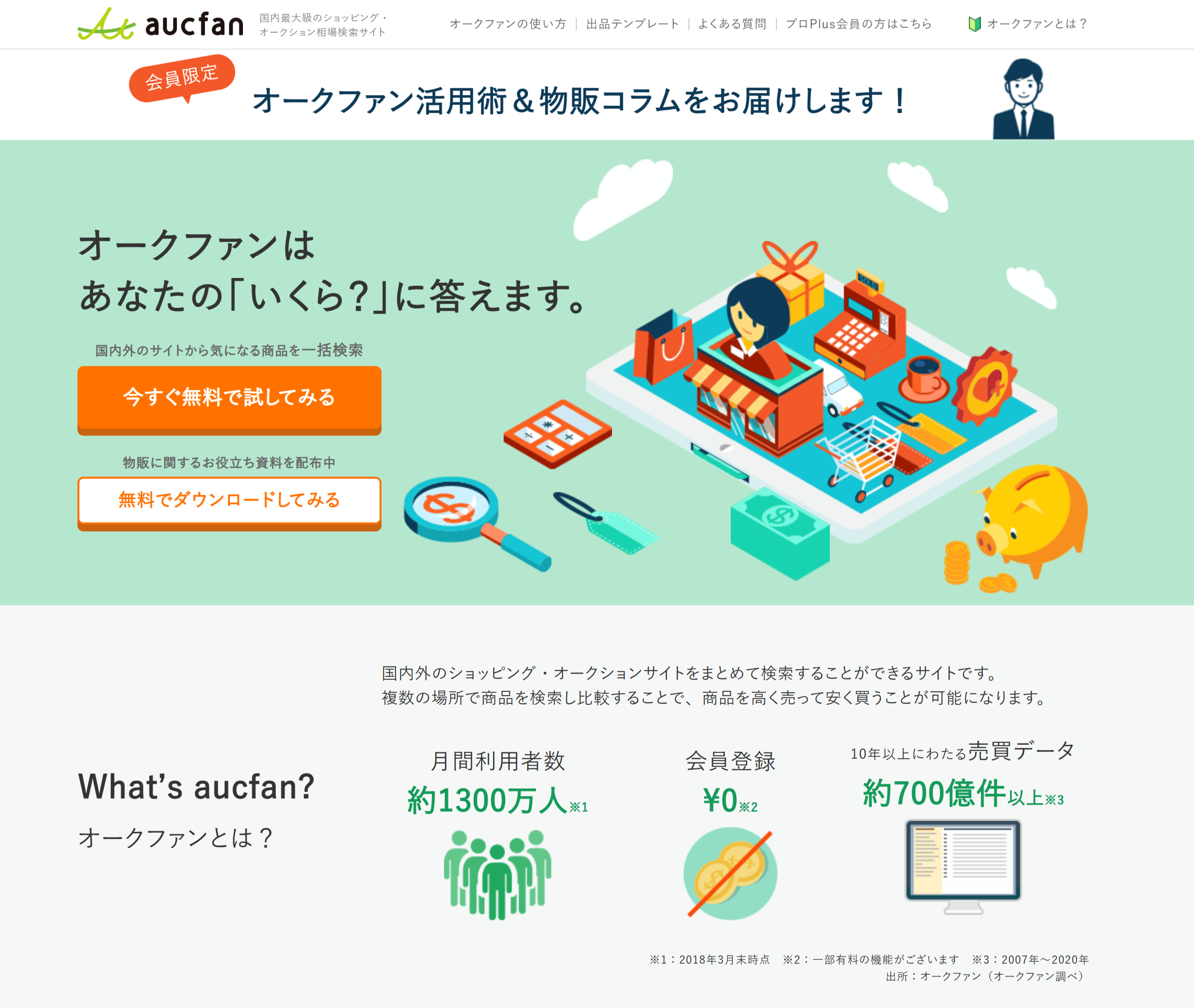 【PR】オークファン 今回ご紹介するのは、ショッピング・オークションの相場情報を取り扱う、相場検索サイトです!国内外のサイトに幅広く対応し、 初心者はもちろんのこと物販事業者をサポートします。不用品販売を行いたい方、フリマアプリを活用してお小遣い稼ぎしたい人はもちろん、個人事業者として本格的に物販を行いたい人にもおすすめのサイトです!詳しくは下記バナーをクリック↓ 今回ご紹介するのは、ショッピング・オークションの相場情報を取り扱う、相場検索サイトです!国内外のサイトに幅広く対応し、 初心者はもちろんのこと物販事業者をサポートします。不用品販売を行いたい方、フリマアプリを活用してお小遣い稼ぎしたい人はもちろん、個人事業者として本格的に物販を行いたい人にもおすすめのサイトです!詳しくは下記バナーをクリック↓ 詳細はこちらをクリック こんな方におすすめ ◎できるだけ安く商品を買いたい/ 高く売りたい人 購入・販売を検討中の商品の取引情報を検索。価格や旬のタイミングを把握できます。また、複数のショッピングサイトを比較できるためサイトを選んで取引できます! ◎レア商品を探している 保有データ数が多いので、他のサイトで見つからなかった商品の情報も見つけることができます。 ◎売り買いを便利にする ツールが使いたい! ◎売り買いを便利にするツールが使いたい! 商品への自動入札機能、気になる商品や検索条件を登録し自動で商品情報が通知されるなど、売り買いを効率的にする機能があります。 プランのご紹介 ●無料会員 過去6ヶ月までの落札相場の検索や、 ショッピングサイト横断検索、そして欲しい商品がメールで通知される検索アラート機能などが利用できます。 過去6ヶ月までの落札相場の検索や、ショッピングサイト横断検索、そして欲しい商品がメールで通知される検索アラート機能などが利用できます。 ●プレミアム会員【初月無料】月額2,200円 現在から過去10年間分、数にして約700億件の落札相場検索が出来る!需要と供給のバランスを予測分析することができ、 損を限りなく減らしながら商品売買をすることが可能です。★安く買い、高く売る秘訣が満載★初月無料で気軽に体験★最大10年分の商品価格を閲覧可能 現在から過去10年間分、数にして約700億件の落札相場検索が出来る!需要と供給のバランスを予測分析することができ、 損を限りなく減らしながら商品売買をすることが可能です。★安く買い、高く売る秘訣が満載★初月無料で気軽に体験★最大10年分の商品価格を閲覧可能 おすすめ情報 詳細はこちらのバナーから↓ 商材名 オークファン運営者 R.S※当サイトはアフィリエイトプログラムを利用し宣伝目的で作成しております。