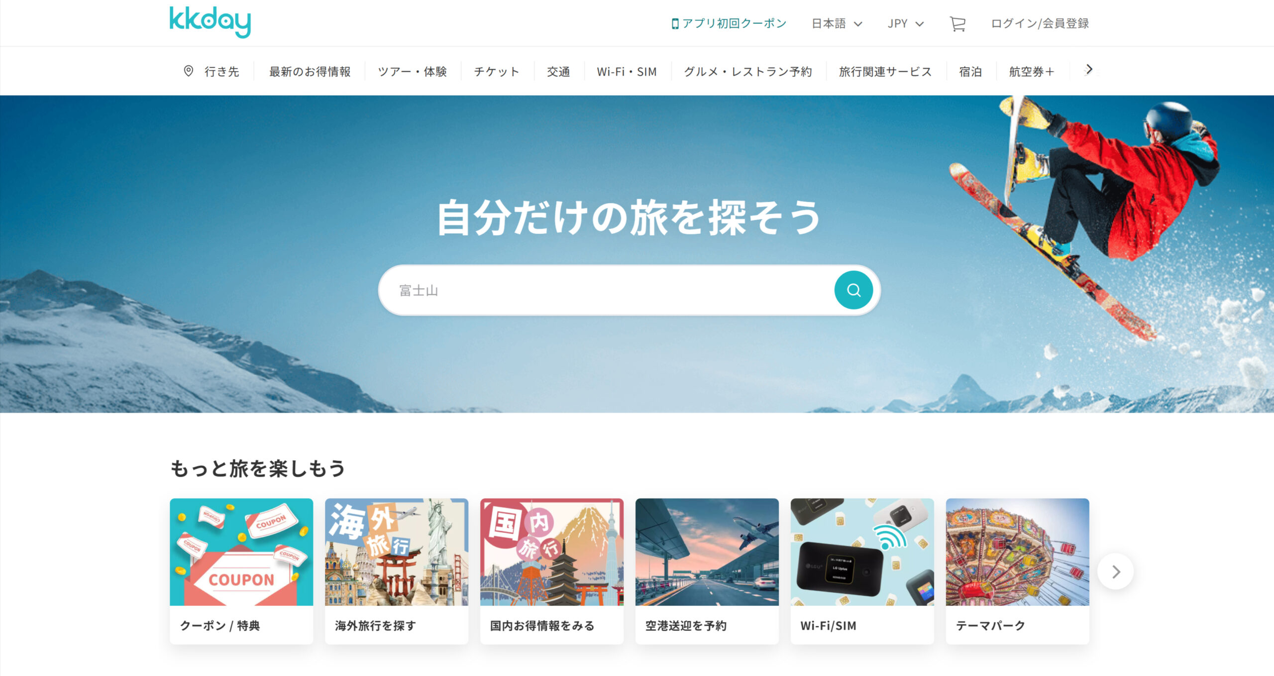 【PR】KKday 今回ご紹介するのは、世界各国のツアーチケットや、施設利用チケットのオンライン予約サイトです!世界各地80カ国、2万種類を超える豊富な体験プランの中から、簡単に検索&購入ができます。海外現地ツアーも、日本語対応&クレジットカードで楽々決済!どなたでもスムーズに旅行プランをカスタマイズできるサービスです。台湾・香港・タイ・フィリピンのツアー商品、テーマパークチケット、Wi-FiやSIMカード等の便利商品が人気です!詳しくは下記バナーをクリック↓ 今回ご紹介するのは、世界各国のツアーチケットや、施設利用チケットのオンライン予約サイトです!世界各地80カ国、2万種類を超える豊富な体験プランの中から簡単に検索&購入ができます。海外現地ツアーも日本語対応&クレジットカードで楽々決済!どなたでもスムーズに旅行プランをカスタマイズできるサービスです。台湾・香港・タイ・フィリピンのツアー商品、テーマパークチケット、Wi-FiやSIMカード等の便利商品が人気です!詳しくは下記バナーをクリック↓ 詳細はこちらをクリック ◎おすすめ商品 >> 海外旅行 >> 国内旅行 >> eSIM、ポケットWi-Fi 海外旅行 【台湾】【日本語の案内選択可能】 【台湾】【日本語の案内選択可能】 台北発 日帰り観光ツアー九份&十分 ランタン飛ばし体験日中 / 夜間コース 6,385円 → 3,406円~ 台北発 日帰り観光ツアー 九份&十分ランタン飛ばし体験 日中 / 夜間コース 6,385円 → 3,406円~ 美しい景色とご当地グルメを楽しめる九份や、商店街の真ん中を列車が通る十分など、定番人気観光スポットを車で効率よく巡るコスパ抜群のツアーです。人気のランタン飛ばしも体験可能!(ランタン代は自費)自力で行くのは大変、、、行きたいけど行き方が分からない方にオススメ! 美しい景色とご当地グルメを楽しめる九份や、商店街の真ん中を列車が通る十分など、定番人気観光スポットを車で効率よく巡るコスパ抜群のツアーです。人気のランタン飛ばしも体験可能!(ランタン代は自費)自力で行くのは大変、、、行きたいけど行き方が分からない方にオススメ! 【韓国・ソウル】【英語ガイド】 【韓国・ソウル】【英語ガイド】 ソウル 韓服レンタル 景福宮近く1,890円 → 1,785円~ 韓国・ソウルの景福宮近くで韓服レンタル!事前予約すれば、スムーズに利用できるので、貴重な旅行の時間を節約できます。多彩なデザインの韓服を取り揃えているため、お好きな色やデザインを選べます。韓服を着ると、景福宮に無料で入場できます。韓服を着て景福宮を観光しましょう! 韓国・ソウルの景福宮近くで韓服レンタル!事前予約すれば、スムーズに利用できるので、貴重な旅行の時間を節約できます。多彩なデザインの韓服を取り揃えているため、お好きな色やデザインを選べます。韓服を着ると、景福宮に無料で入場できます。韓服を着て景福宮を観光しましょう! 【タイ・バンコク】【特別価格】【日本語ガイド】【ホテル迎え付き】 【タイ・バンコク】【特別価格】【日本語ガイド】【ホテル迎え付き】 1名催行 アユタヤ遺跡+水上マーケット+メークロン市場1日ツアー 13,800円 → 12,420円~ 1名催行 アユタヤ遺跡+水上マーケット+メークロン市場 1日ツアー 13,800円 → 12,420円~ 水上マーケットで小舟体験、メークロン市場で目の前すれすれ数センチを列車が過ぎる驚愕の瞬間を体験、アユタヤ3大遺跡を訪問など、バンコク周辺人気スポットを効率よくギュッと詰めた充実の1日。希望者は自由時間に象乗り体験も可能。 水上マーケットで小舟体験、メークロン市場で目の前すれすれ数センチを列車が過ぎる驚愕の瞬間を体験、アユタヤ3大遺跡を訪問など、バンコク周辺人気スポットを効率よくギュッと詰めた充実の1日。希望者は自由時間に象乗り体験も可能。 国内旅行 【茨城】【期間限定】 【茨城】【期間限定】 日本三大イルミネーション巡り日帰り旅行|東京発12,500円 → 10,000円 海に浮かぶ美しい大洗磯前神社の鳥居、市場の海の幸、開運で有名な酒霊前神社、冬季限定500万球のイルミネーションなど、関東を代表する海景と四季折々の名所を巡ります。カップル、友人、親子での旅におすすめです。2025年秋から冬までの期間限定です。 海に浮かぶ美しい大洗磯前神社の鳥居、市場の海の幸、開運で有名な酒霊前神社、冬季限定500万球のイルミネーションなど、関東を代表する海景と四季折々の名所を巡ります。カップル、友人、親子での旅におすすめです。2025年秋から冬までの期間限定です。 eSIM、ポケットWi-Fi 【韓国】【50%割引】 【韓国】【50%割引】 韓国 eSIMワンクリックインストール対応148円 → 74円~ 韓国の通信大手のネットワークが利用でき、韓国でインターネットを手軽に使えるeSIM。面倒な設定やSIMカードの入れ替えも不要で、すぐに快適に4Gインターネットが使用可能!SIMカードを受け取りに行ったり配送を待つ必要もありません。 韓国の通信大手のネットワークが利用でき、韓国でインターネットを手軽に使えるeSIM。面倒